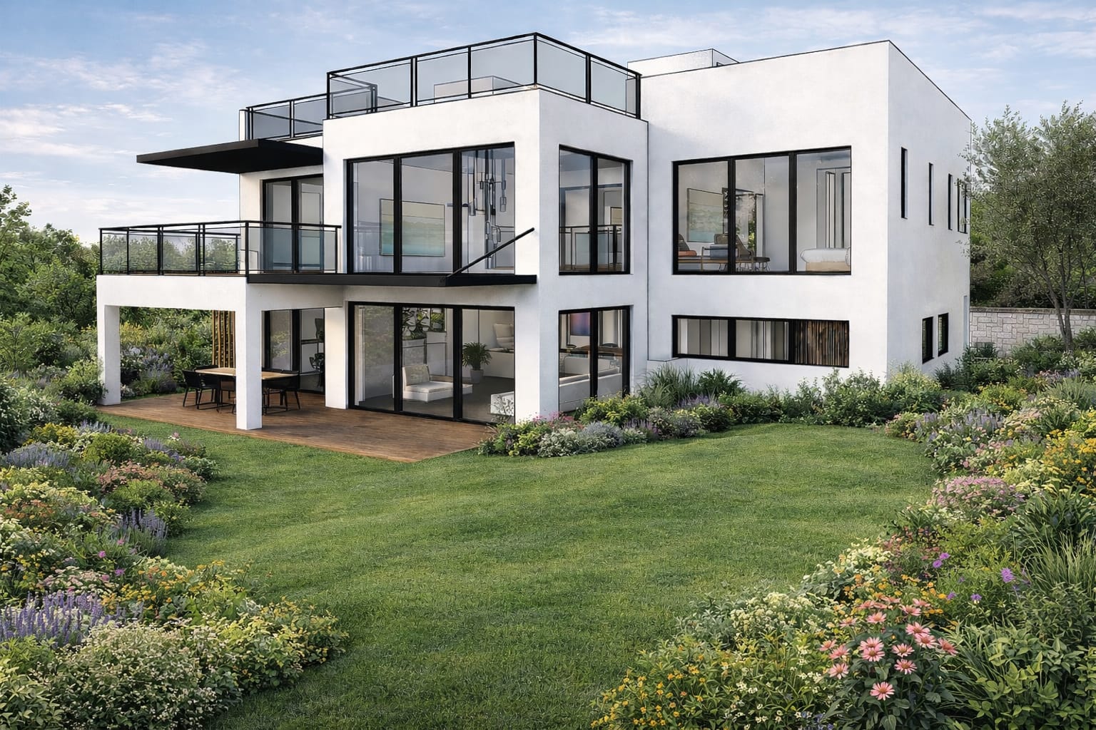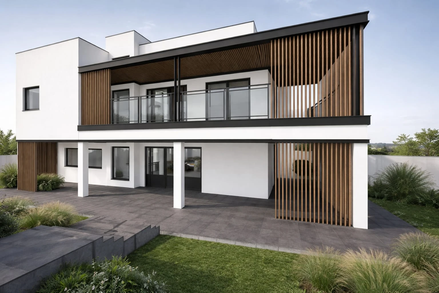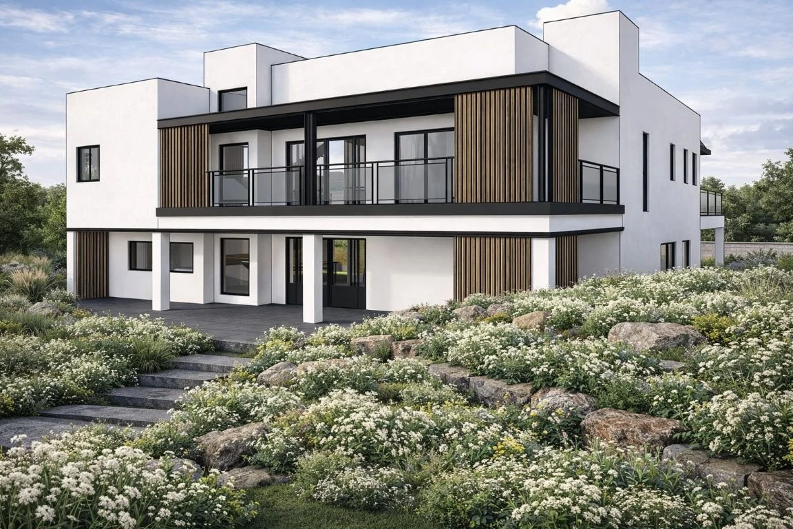 The renewal focused on creating a coherent architectural language, redefining the façade and relocating the entrance to the center of the house to establish a clear and continuous architectural gesture. The upper front balcony was emphasized באמצעות a horizontal pergola and a steel beam that create a continuous horizontal frontage. Opening the stairwell turned it into a light shaft connecting the floors. A consistent palette of wood, steel, and glass was used throughout.