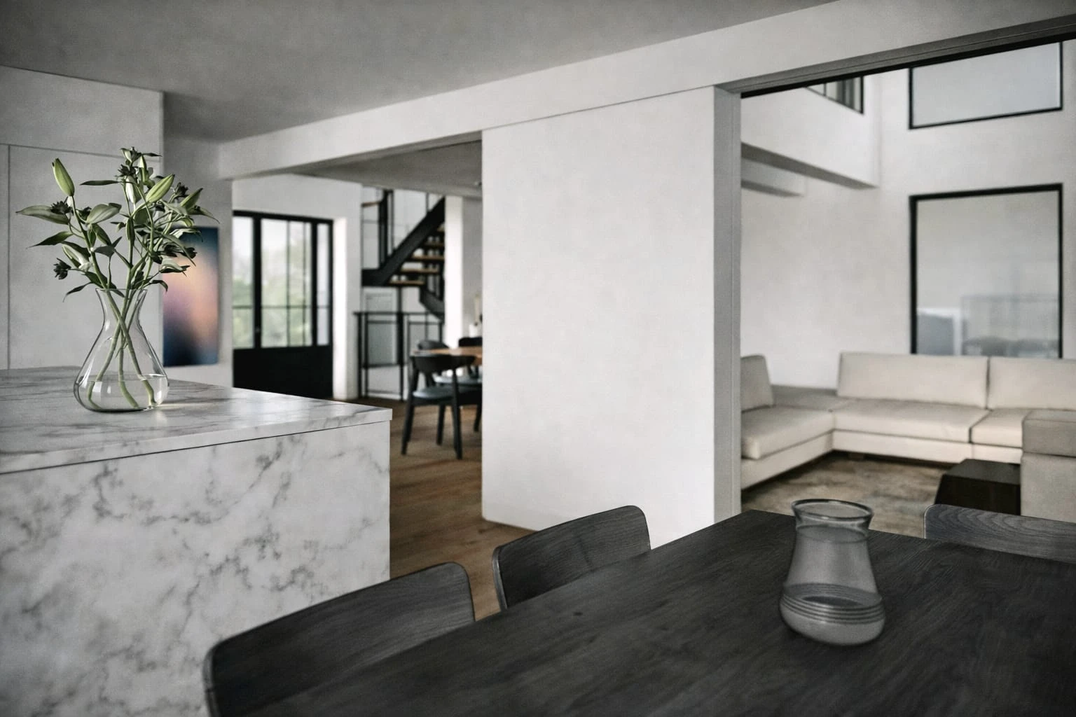 At first glance, the gap between the scale of the existing house and its potential for a compelling architectural experience was evident. The existing structure is large and modern, with wide openings, yet it lacked character and hierarchy.