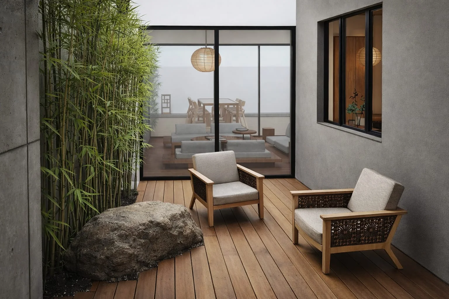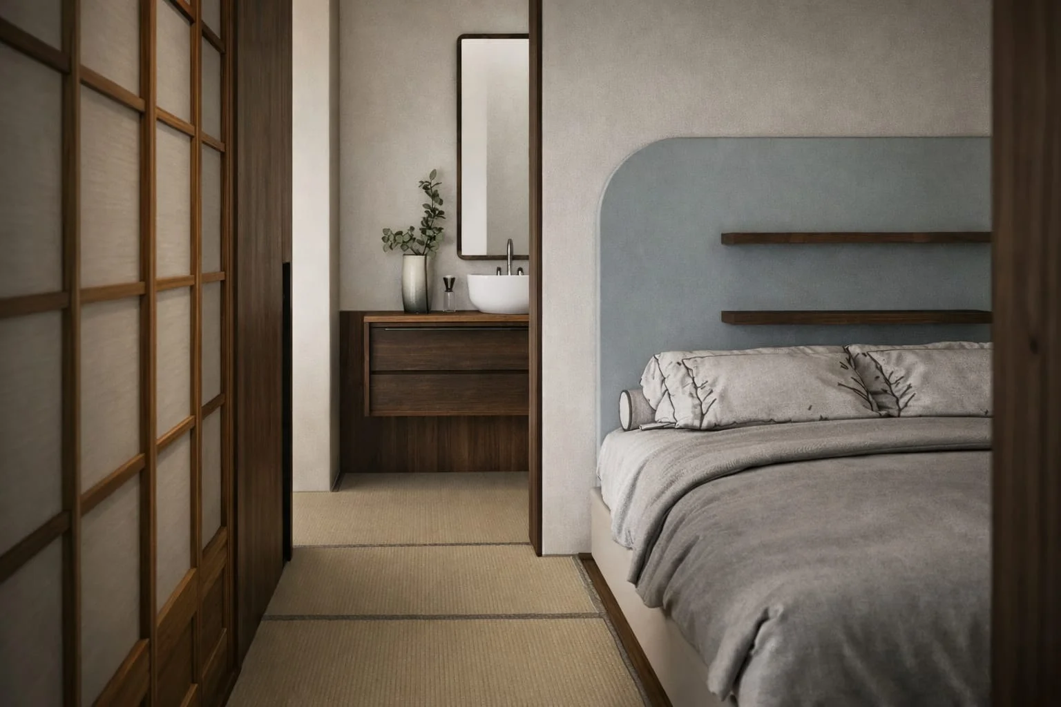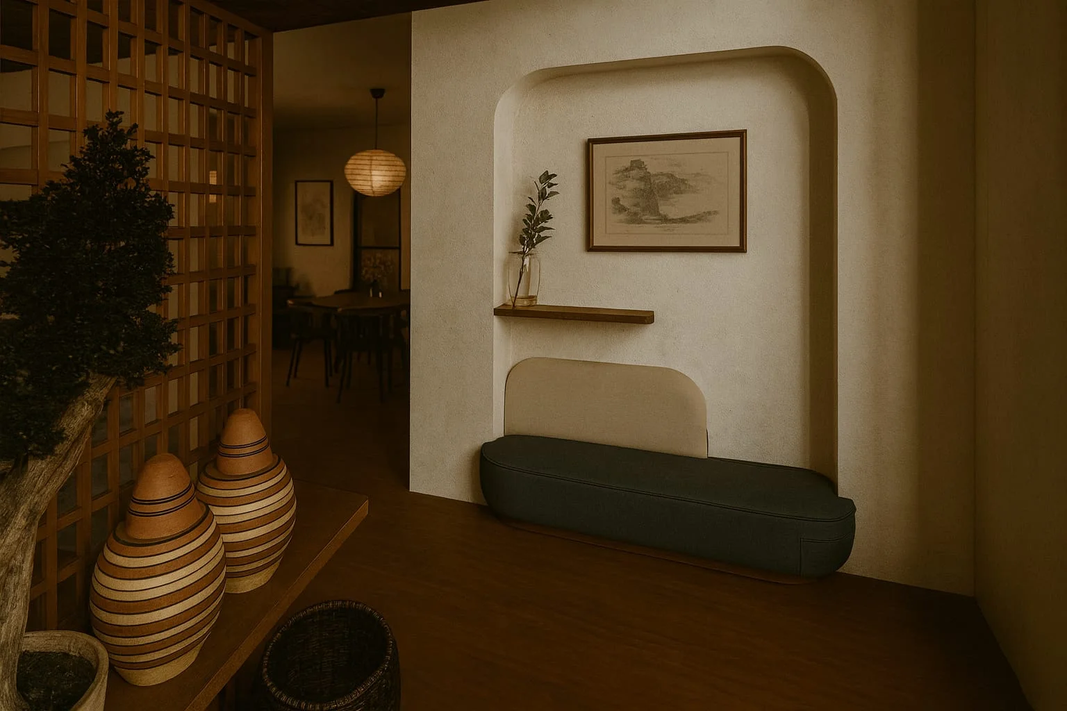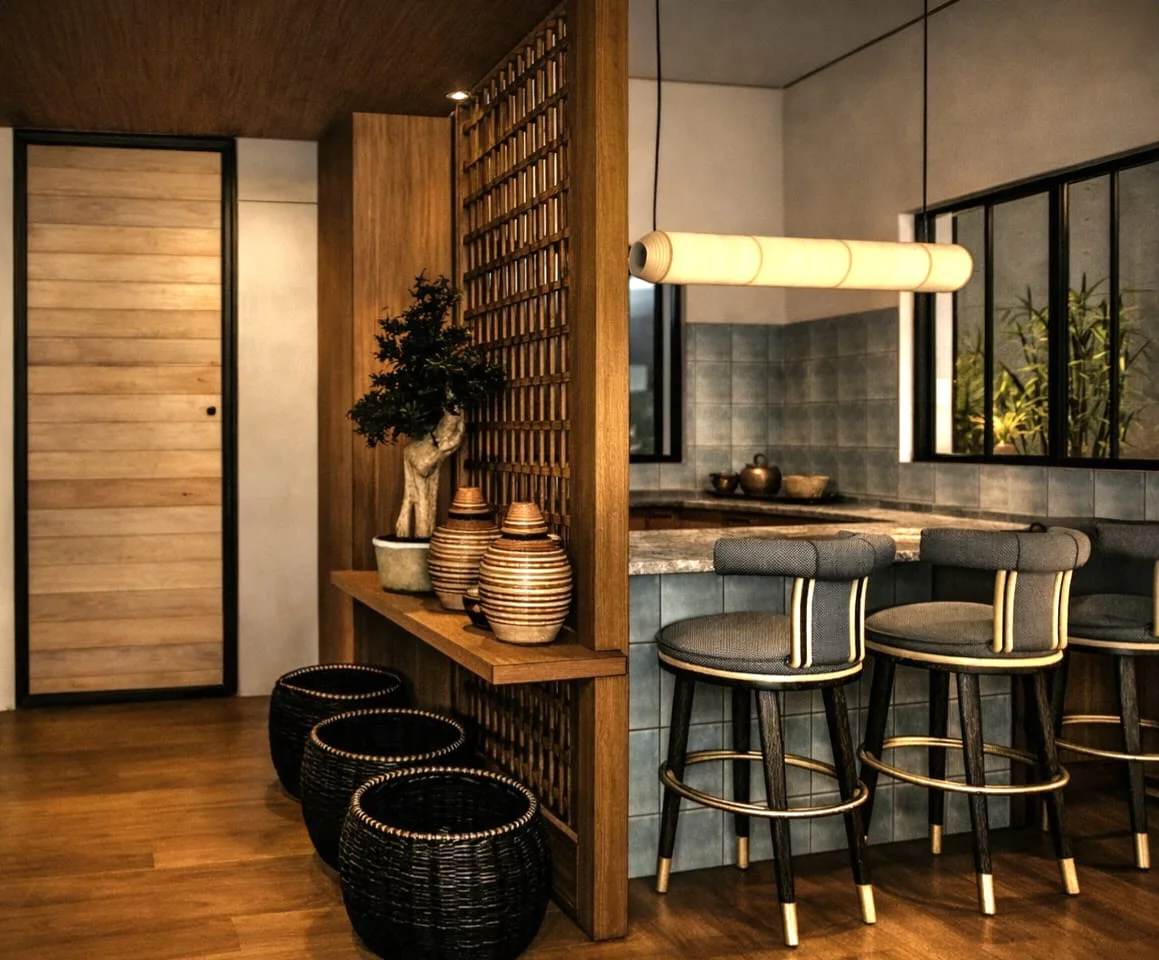 The house was designed as a relationship between space, light, and inner quiet, inspired by Japanese and Zen culture. Filtered light defines a daily rhythm of dwelling and contemplation, shaping the sense of time within the home. The building’s placement creates inward gathering through front and rear courtyards designed as calm patios that allow pause and meditation, with emptiness acting as an organizing element. This is a simple, mindful architecture that creates a spiritual experience through light and material. A restrained palette of natural materials repeats throughout the house, forming a calm, visually quiet environment. Material is a tool for experience — a gentle meeting of spirit, feeling, and meaning